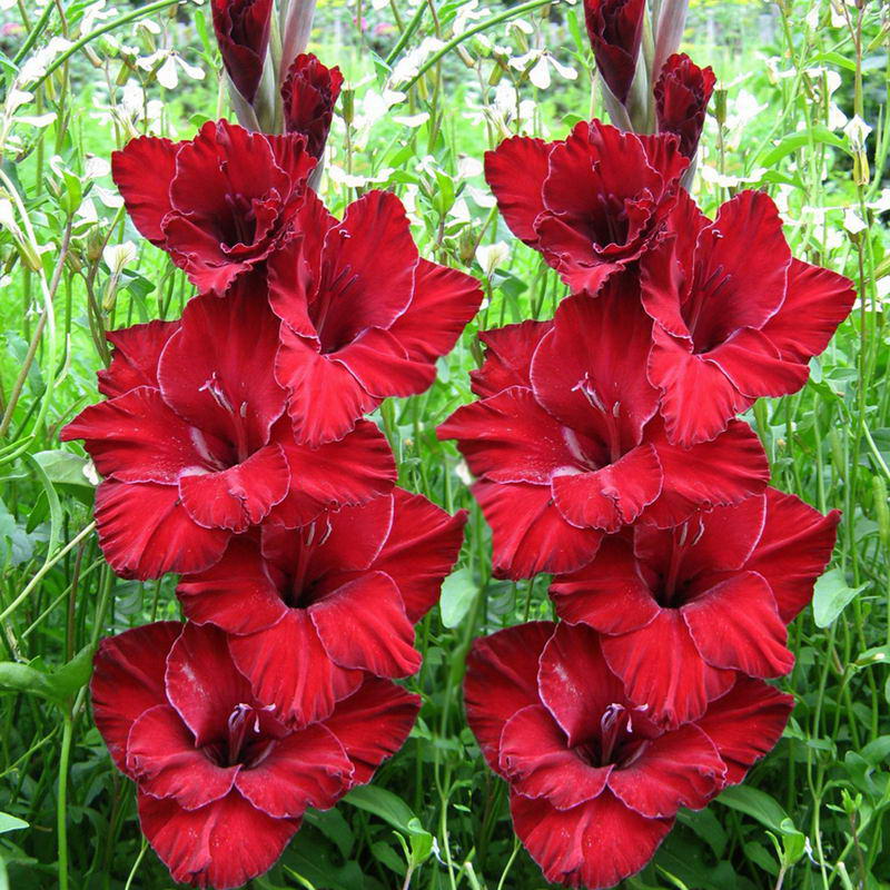 Луковицы гладиолуса гибридного Black Surprise используются для создания групповых и одиночных посадок, получения срезки в букеты. Высота растения в среднем около 100-120 см. Но отдельные экземпляры могут достигать до 150 см. Стебель вертикальный, одиночный, облиственный. Цветки темно-бордовые с легкими белыми стрелками. Не раскрывшиеся бутоны практически черного окраса. Период цветения длится с июля до сентября и сопровождается приятным ароматом. Выращивать гладиолусы гибридные Black Surprise рекомендуют на солнечных или частично освещенных участках, защищенных от сквозняков, без застоя влаги.