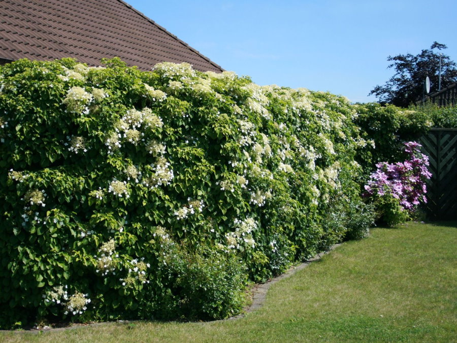 Саженцы гортензии черешковой Petiolaris хорошо смотрятся в качестве живой изгороди. Высаживать их рекомендуют в плодородную, рыхлую, немного подкисленную, влажную почву на теневые участки. На солнце листики могут подгорать. Взрослое растение имеет высоту около 20 метров и столько же может разрастаться и в ширину. Цветочки кремово-белого цвета, собраны в щитковидные соцветия, достигают в диаметре около 20 см, с приятным нежным ароматом. Период цветения длится с июля до конца августа. При выращивании без опоры побеги гортензии черешковой Petiolaris плетутся по земле.