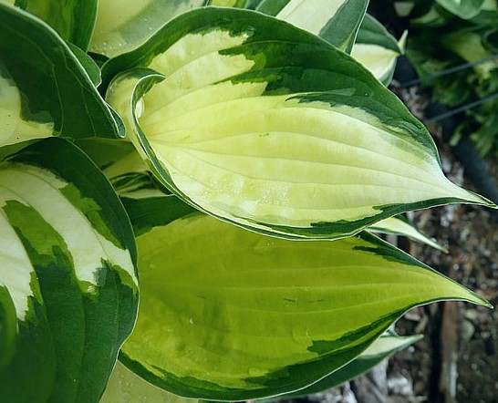 Летняя окраска листвы : Кремово-желтый центр листа контрастирует с темно-зеленым краем.